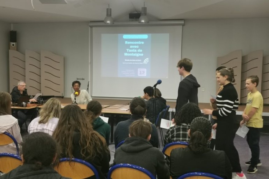 Dans le cadre du festival “Au fil des ailes”, organisé par l’association Interbibly et la médiathèque départementale de Haute-Marne, les classe de 3e5 et 3e4 du collège Anne-Franck de Saint-Dizier a fait la rencontre de l’écrivaine Tania De Montaigne.