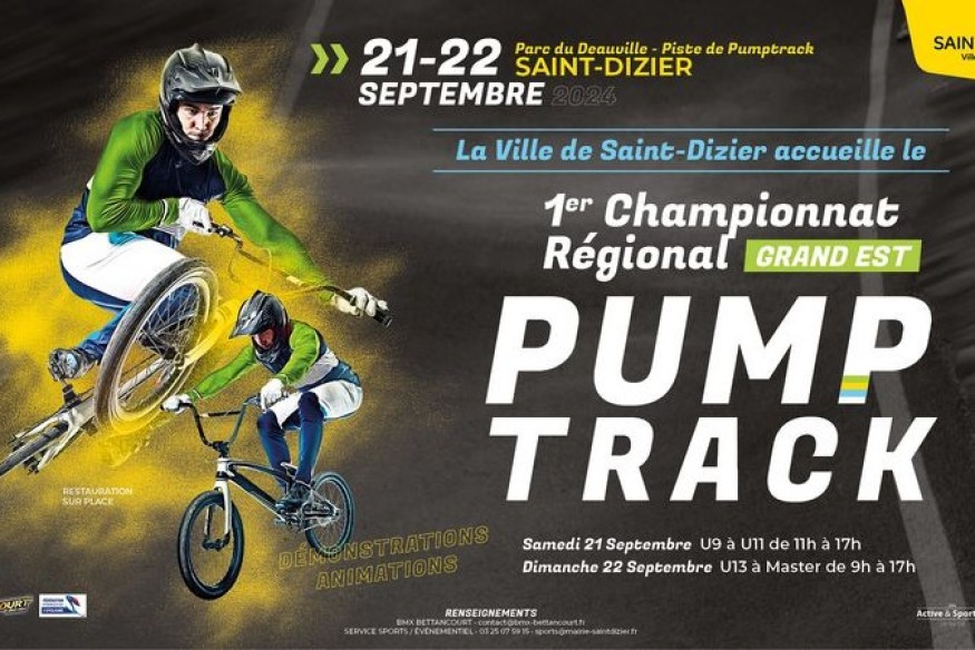 Prés de 300 pilotes sont attendus les 21 et 22 septembre sur la piste de pumptrack située au parc du Deauville à Saint-Dizier pour le premier championnat régional de Pumptrack.La compétition est ouverte aux licenciés de la Fédération Française de Cyclisme (FFC), hommes et femmes, le samedi pour les catégories U7, U9, U11 et U13, et le dimanche pour les U15, U17, U19, Seniors et Masters.Des animations et démonstrations seront proposées tout au long du week-end.