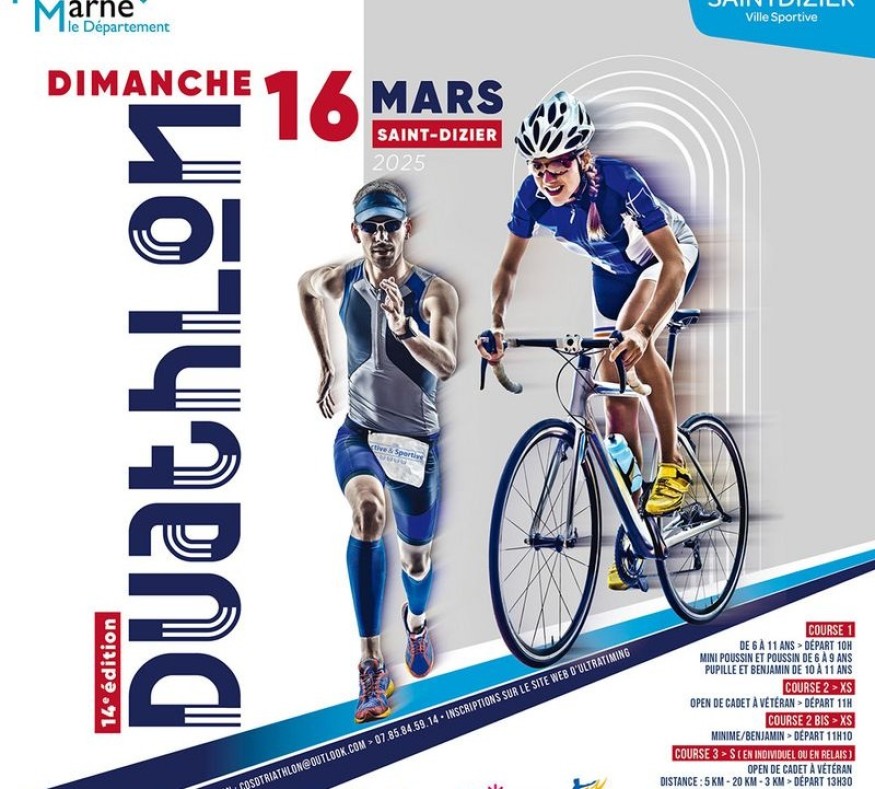 Zoom sur la 14ᵉ édition du duathlon de Saint-Dizier, organisée par le COSD Triathlon le dimanche 16 mars 2025.