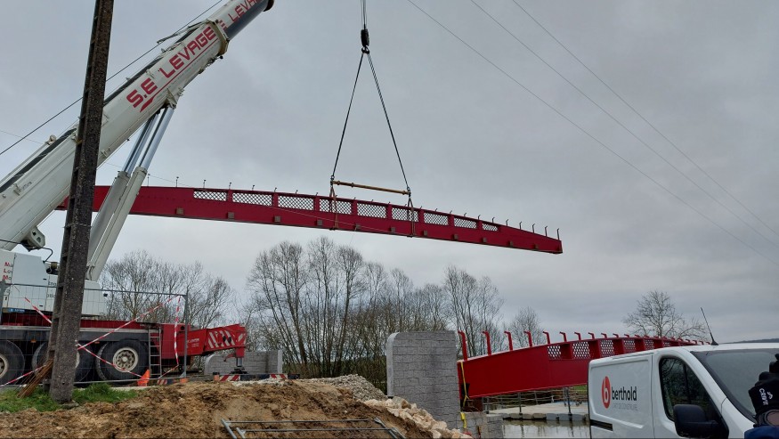Le 11 décembre dernier, certains habitants de Sampigny ont pu assister à l'arrivée et au montage de la charpente métallique d'un des ponts de la RN12A, celui du pont de la Prairie.